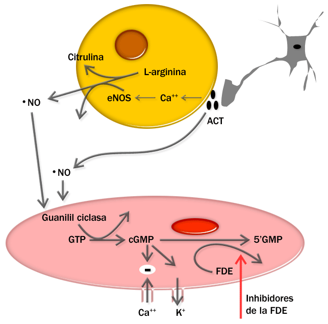 Y el NO puede activar y causar GMPc que hace que los vasos sanguíneos del pene se relajen, la sangre pueda llegar y podamos conseguir una erección.