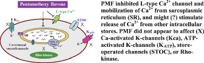 En ese tercer estudio, se demostraba que la Kaempferia inhibia la PDE-5. Pero parece ser según este último estudio que su inhibición es pequeña y SU PODER VASODILATADOR dependería de los canales de Calcio (Ca2+) via 3, 5, 7, 3 ‘, 4’-pentamethoxyflavona (PMF) que se encuentra en los rizomas: