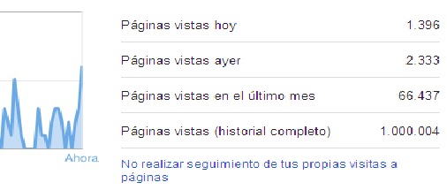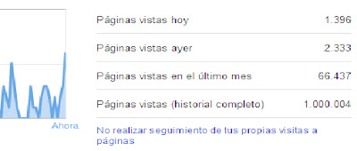 Hoy es un dia importante para el BLOG porque llega al 1.000.000 de visitas. Y estoy casi seguro que es el ÚNICO BLOG EN EL MUNDO HECHO DESDE BIBLIOTECAS PÚBLICAS Y LOCUTORIOS PAKISTANÍS QUE LLEGA A ESA CIFRA.