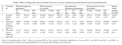Y según estudio indio publicado el 12 de marzo del 2013 aumenta el número de montas, la frecuencia de intromisión y también la fertilidad en ratas a las que se le daba un extracto metanólico de su fruto: