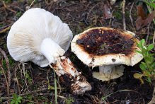 Y he tenido la suerte de encontrar en los bosques catalanes el Escarlet de pi, Garlandi, Amargant  o Moret (en catalán) cuyo nombre científico es Tricholoma caligatum (foto inferior). Se trata de una seta marronacea de tronco blanco,  hermana de la seta más cara del Japón, Tricholoma matsutake (foto superior e inferior 2). Comestible pero amargante sus propiedades curativas son increibles:
