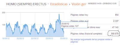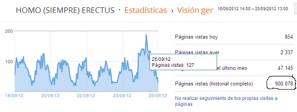 Hoy, después de 2 años y medio el blog ha superado las 900.000 visitas. Muchísimos BLOGS del mundo jamás llegarán a este número de visitantes en toda su existencia.